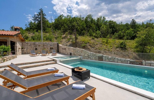 This house is a typical Istrian stone house, renovated with a lot of attention and creativity, and every detail is a real little work of art. Labin is only 3 km away, while Rabac and numerous well-kept beaches are 6 km away. In the spacious garden, guests can enjoy a swimming pool with hydro massage and children's pool, sun loungers for sunbathing, a covered summer kitchen with a wood fireplace, an outdoor shower and several parking spaces. The house is surrounded by greenery and is ideal for a relaxing holiday in absolute peace.