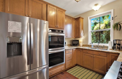 ✪ The Kitchen features a 6-burner gas range top, double ovens, French door refrigerator with water in door, microwave, coffee maker, toaster and barstool seating for 6. It is fully equipped and stocked with gadgets and wares for making exquisite meals, crafting cocktails or morning coffee drinks and everything in between.