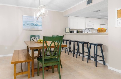 Hosted by "Bourbon City Rentals" our newly remodeled 2nd Floor, 3 Bedroom 2 Bath Beach Cottage Condo with amazing Gulf views sleeps 8. Important to note we are on the pool side, not the bird sanctuary side. The pool side is much more desirable. Our heated pool is open year-round. Indian Shores is a quiet classic beach town with soft white sand beaches. Centrally located between St Pete & Clearwater Beach. Our stylish, clean condo features custom-built cabinets, granite countertops, and a fully stocked kitchen with a washer/dryer.