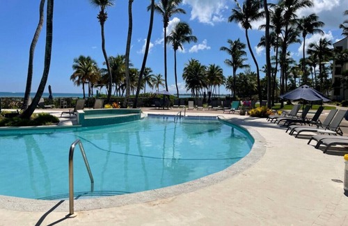 Kick back and relax in this calm, stylish space. Unique and tranquil 2 bedroom Beachfront getaway located at the Wyndham Rio Mar Golf & Beach Resort. Part of a 500-acre resort community bordered by El Yunque National Forest, two golf courses and the magnificent Atlantic Ocean filled with amenities for all guests including pools*, a mile long beach, restaurants/lounges, tennis courts, walking/bike trails, fitness center, spa, casino, water sports rentals and more. Just 35 minutes from San Juan!!!