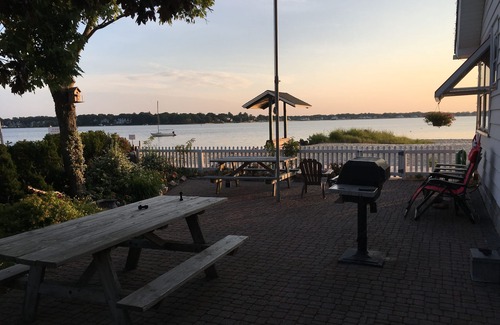 This is a 2 room apt. at the rear of our beachfront home in the small town of OCEAN GATE. Good for 2 mature adults. Full kitchen, queen size bed. Smart T.V. Includes inside and outside hot water shower and shaded beachfront patio area with tables and nat. gas grill. Two kayaks that can be launched right from the beach. As little as 40 feet to the water from the patio area. One on property parking spot next to your private entrance. Beach badges included.