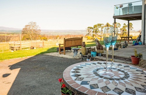 The property's surroundings include a petting farm for shared use, and it is situated in a countryside setting with a secluded, quiet, and elevated position. Well-known lakes like Loch Ness can easily be reached from the vacation rental.