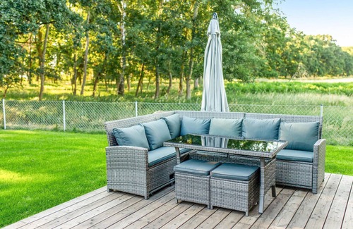 This modern and stylish vacation home welcomes you to the shores of the Szczecin Lagoon.