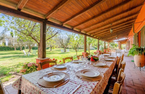 Come to this large and well equipped farmhouse with private swimming pool and large outdoor terrace. Ideal for groups of friends and families who want to spend both a relaxing vacation in the countryside and intense days by the sea. Enjoy your privacy on this wonderful property that leaves little to be desired. Whether in the garden, on the terrace or indoors, everyone will find his or her own favorite place where he or she can completely relax. Jump for refreshment in the large pool or challenge your children to a game of table soccer. The four-legged friend you brought with you can romp among the trees and you can sunbathe on the lounger next to the pool.