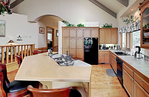 Grill and dine alfresco on the wraparound deck as you take in filtered views of Papoose Lake. Play a game of foosball in the great room, and then light the outdoor gas firepit and finish the day under the stars.