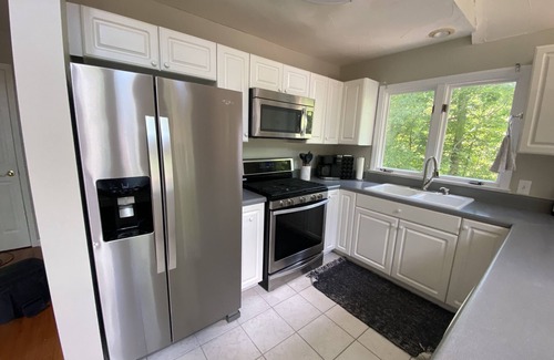 Relax with the whole family at this peaceful place to stay. Freshly repainted interior, new basement bedroom and extra lounge space throughout. The main living space is open and bright with floor-to-ceiling windows of this beautiful A-frame home. Great area for swimming on one of the best lakes in NC. Enjoy the great views of the lake each morning or sit and relax with a coffee on the dock. This house is perfect for anyone looking for a peaceful stay at the lake.