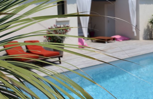 Sunny garden and 8x5 swimming pool - Wooden terrace / Deckchairs. Calm.