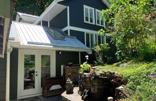 Mackey landing is the first home on a private driveway off of Beddis Rd. It is only a 3km drive from town and a 15 minute walk from a public ocean access . It has bus routes available for town and the ferry terminals. The suite has two small covered wooden decks, one on each level and an outside private wooded sitting area which includes a barbecue and seasonally a lovely forest hammock. A laundry facility is available for visits over three days. Theresa and I live on the property and have called Saltspring Island our home for 35 years. We are happy to meet you for a visit, give you information about the island or respect your complete privacy while you visit. This is the home of an artistic family, all the art work in the suite is for sale and Ron's studio is open for a visit by appointment.