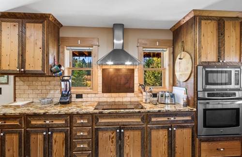 This remarkable 2-bedroom 2-story house is the perfect place to relax and enjoy the surrounding beauty of the greater Yellowstone area. This home is a picture-perfect retreat with everything needed to have a relaxing and memorable Yellowstone vacation. On the bottom floor you have the primary bedroom with ensuite bathroom featuring a large soaking tub, the guest bedroom, and the main kitchen. The main kitchen is sure to have everything you need to cook up a stunning meal for you and your guests. Upstairs you will find the great room and bar area that is perfect for entertaining in the evenings. The spacious living room has 2 fold-out queen sofa beds, a large screen smart tv, and tons of games and books to keep everyone busy for hours. The bar area makes hosting a breeze with everything you need all in one place including a drink cooler, microwave, blender, sink, and even a coffee machine. Please note: Use of the wood burning fireplace by guests is restricted.