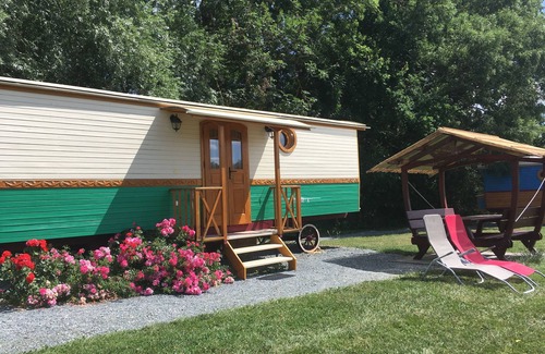 -2 Roulottes 4 places, gite (with kitchen) separate bedroom and bunk beds to accommodate a small family.