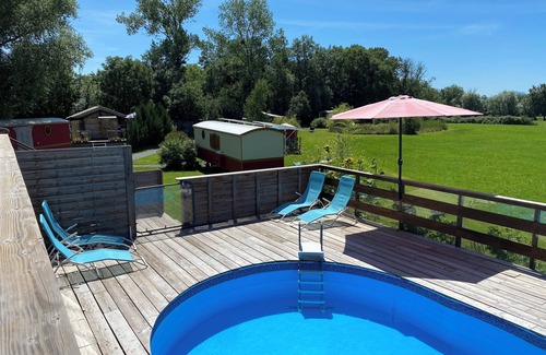 -2 Roulottes 4 places, gite (with kitchen) separate bedroom and bunk beds to accommodate a small family.