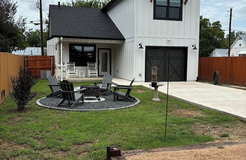 This farmhouse is perfectly located just a few blocks from Main Street of Bastrop. It's in the middle of everything Bastrop. Just a short walk away are: the Colorado River, restaurants, wine and bar establishments, Lost Pines Art Center, Bastrop Convention Center, Schulmans movie theater, and the World Famous Bucees. The home was custom built in 2023 and modeled as a “modern farmhouse”. This gorgeous 1200 SqFt, 2-story house is decked out with Texas farm and charm.
