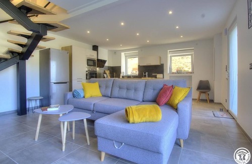 Water activities in winter and summer less than 5 km away? Then welcome to Apremont. What if you discovered a real natural gem surrounded by greenery and fir trees? Immerse yourself in this natural playground in the summer. Between swimming, fishing, hiking, sporting moments for all ages. And in winter? Go to Lake Genin, a little gem of nature perched at an altitude of 900 m and try skating or for the more experienced, diving under the ice? To warm up, go to the inn and extend this moment of conviviality around a good meal. For budding skiers or perfectionists, a family ski resort nearby. Summer or winter, many activities for a day or a stay. A bit of history? The Museum of Resistance and Deportation of Ain in Nantua. Continue with the Comb and Plastics Museum in Oyonnax. The cottage, for 6 people, with two bedrooms, is located in the village of Apremont. A large terrace dedicated to relaxation. 40 m² just for you. But also enjoy the interior. A small cocoon of light, of lightness, to find yourself. The entrance is through a sliding gate that leads directly onto the terrace. Large living room with very functional and very well-equipped kitchen. A soft mix of wood, metal and dynamic colors. On the ground floor: equipped kitchen open to living room and lounge; separate toilet; shower room. 1st floor: at the top of the stairs relaxation-games area with single-person armchair and two bedrooms (1 with 1 140 bed and 1 bedroom with 1 160 bed and 1 90 bed); WC. Travel light: on arrival the beds are made. Towels and household linen provided. Charges included. Would you like to take the cleaning package? An amount of €70 will be requested. Semi-detached house with the owners, but not overlooked. Wood central heating. Private parking but not adjoining.