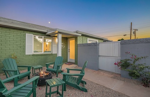 Fashionable two-bedroom, two-bathroom remodeled bungalow on Phoenix’s prestigious midtown east near shopping, restaurants, & entertainment. Biltmore Fashion Park is two miles, Downtown Phoenix is three miles, Arcadia is four miles, Old Town Scottsdale is six miles, and Sky Harbor Airport is two miles.