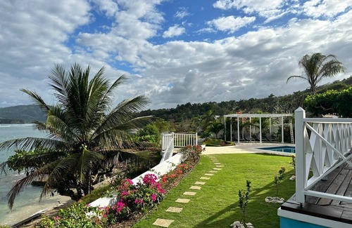 Bougan Blu ( formerly Dowling House) is a charming 3 bedroom , 3 1/2 bathroom beach front cottage nestled on a lush, private half acre property overlooking the turquoise blue waters of the Caribbean Sea in the quiet fishing village of Port Maria , St Mary. Located along Jamaica’s North Coast , it is only a 20 minute drive east of Ocho Rios.