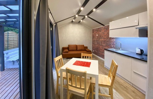 Newly built family friendly resort. In addition to the simple and modern wooden bungalows, there is also a parking space. The location of the municipality makes the small, fine bathing resort of DziwnÓw an ideal place for water sports, hiking or just relaxing. The bascule bridge that connects the mainland and the island of Wolin is particularly worth seeing. Activities nearby : The village of Dziwnow is an ideal place for water sports such as sailing, wind and kite surfing, wakeboarding and diving. In the village you will find a spa park, pine forests and a promenade that invites you to go for walks and bike rides. At the port, pirate ships and converted fishing boats invite you to take round trips on the Baltic Sea Mobility : Not suitable for people with reduced mobility