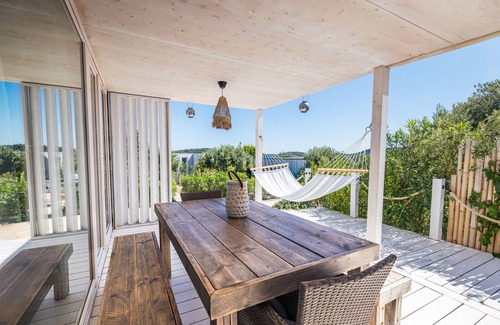 Discover the charming Villa Buqez - a perfect accommodation for families and couples looking for a relaxed holiday directly by the sea. This recently built accommodation offers a tastefully furnished living space of 54 m² and an additional terrace of 20 m².The villa has two cosy bedrooms with a total of three beds - including a double sofa and two queen-size beds - and is ideal for up to 6 people. The modern kitchen is fully equipped with an induction hob, refrigerator, freezer, coffee machine, dishwasher and other practical kitchen appliances.Particularly family-friendly, the accommodation offers a children's zone and a spacious terrace with a garden. Guests can enjoy the outdoor area with garden furniture and a grill and have a beautiful view of the sea, pool, and garden. A private parking space is available, and the villa is equipped with WiFi, air conditioning, and central heating.Pet lovers, take note: A pet is allowed! The location is quiet and directly on the beach, with various beaches in the immediate vicinity. Restaurants, supermarkets, and attractions are located nearby, so holidaymakers have all amenities close at hand.