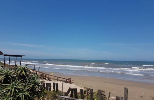 Casa prolija a pasitos de la playa, un dormitorio con cama matrimonial y una cama simple. Dormitorio con aire acondicionado. Cocina y baño completos. Tv con DIRECTV.