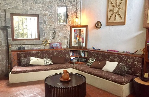 Casa rústica al pie del Tepozteco, bastante amplia, iluminada y cómoda, con una maravillosa vista del cerro desde una amplia terraza y acceso a un agradable jardín. Cuenta con todo lo necesario para sentirte en casa.