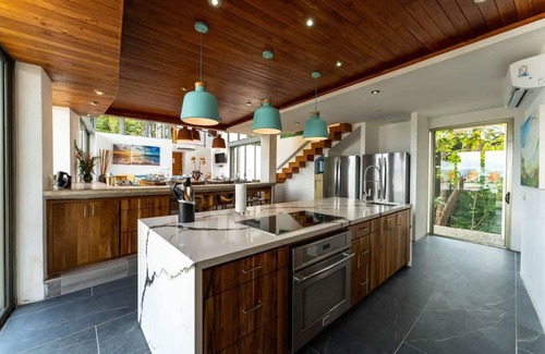 This property also has 3 separate guest suites of 300 square feet each. They have their own private entrance and balcony, a King-size bed as well as a full bathroom. All guest suites are air-conditioned, have amazing ocean views, and are surrounded by forest, so you can wake up to the sound of tropical birds.