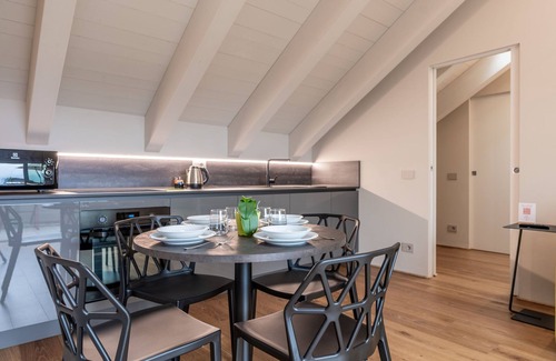 "Monviso", 2-room apartment 56 m2 on 3rd floor. Bright, with sloping ceilings, fully renovated, comfortable and modern furnishings: living/dining room with panoramic window with 1 double sofabed, TV and air conditioning. Exit to the terrace. 1 double bedroom with air conditioning. Exit to the terrace. Kitchenette (oven, dishwasher, 4 induction hot plates, kettle, microwave). Shower/bidet/WC. Air-conditioning, forced-air heating. Heating available only from 15.10. to 15.04. Terrace 15 m2. Terrace furniture. Panoramic view of the countryside. Facilities: children's high chair, baby cot for up to 2 year olds. Internet (WiFi, free). IT004030B4F2MQN5YF