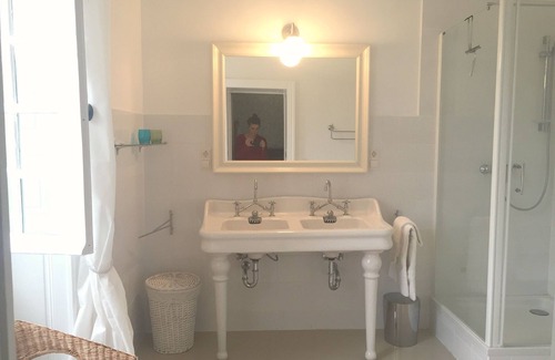 We only rent the house to one tenant. You can accommodate up to 22 guests in 12 bedrooms with 8 bathrooms, in 2 salons and a dining room there is space for all. When it rains: in front of the fireplace it is always beautiful... There is also a room that we use as an office, with a view over the Loire valley and a fireplace in front of the desk, in case someone has to work in between. The house is equipped with Wifi.