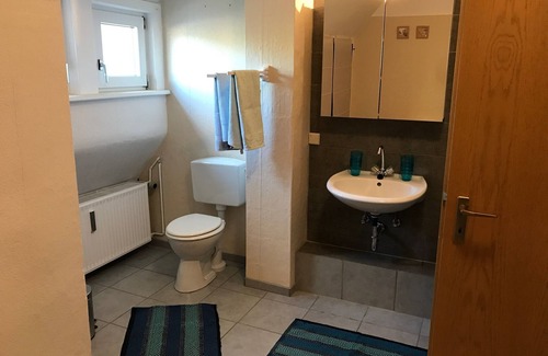 The bathroom also leaves nothing to be desired. It is equipped with a shower and toilet. A hair dryer is also on site so that it does not block any space in the suitcase. In addition, various storage space is available to comfortably accommodate toothbrushes and other utensils for the duration of your stay. A hair dryer is also on site, so you don't have to worry about lack of storage space in your own suitcase. A wall mirror and cozy bath mats complete the picture.