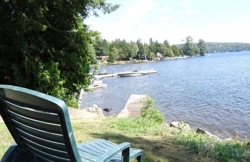 Cottage (Country house) Waterfront Lake Conneley, for vacation, 2000 feet 2, 2 floors, Bath niable, seaworthy for Rent at St-Hippolyte. 45 mins from Montreal, 15 mins from St-Jérôme, 15 mins from St-Sauveur, waterfall. Travel very well even for work. 2 floors, very large fenestrations overlooking the lake. 4 bedrooms, 1 sofa bed, 1 futon, a minimum of 8 people. 2 living rooms, 2 kitchens, 2 bathrooms. Fresh painted in full, Fishing in the yard (Golden, bass, catfish, yellow perch, trout ...), Wharf. Fully equipped High Speed Wi-Fi Internet, Bell Satellite TV, Blu Ray Home Theater, Perfect for Snowmobiles, 4 Wheels, BBQ, 2 Stoves, 2 Fridges, Washer, Dryer, Laundry, Garage, 8 Vehicle Parking. Balcony with water views, Outdoor fireplace. Near grocery stores, restaurants, crate Pop.