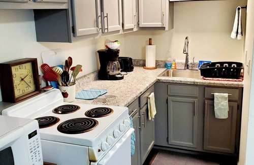 Located on the south side of Tomah near the intersection of Hey 131 (the main street through downtown) and Hwy 16 (a.k.a. US Hwy 12), this adorable apartment is a dream. Apartment #5 has a cozy bedroom on the 2nd floor featuring a full bed, and the first floor has full kitchen with dining area and a bathroom equipped with a shower and hair dryer, Also includes other amenities like WiFi and two smart TVs (one on each floor) plus the full kitchen is stocked with everything you may need to prepare your own at-home meals so guests will feel right at home. The peaceful atmosphere of this apartment is perfect for unwinding after a day of exploring. Kickback, relax, and enjoy everything Tomah and our apartment has to offer. Digital lock provides easy and secure access. Laundry facilities on-site in the basement for your convenience.