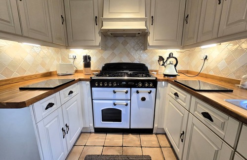 The fully centrally heated cottage comprises of a country style kitchen with range cooker, combination microwave, fridge and washing machine. The separate dining room with multi fuel burner, has a pitch pine dining table and chairs for 4 people plus a 2 seater Chesterfield settee. Tucked away in the pantry is a large fridge freezer. The separate lounge has a further fireplace with stove effect gas fire, a sumptuous 4 seater leather Chesterfield settee, an armchair plus a large coffee table, Smart TV and DVD player. The master bedroom has a King size bed, 2 chests of drawers and a large double wardrobe. The second bedroom has 2 single beds, 2 bedside cabinets with drawers, a chest of drawers plus a built in cupboard. There is a further chest of drawers on the landing for additional storage. The 2 bedrooms share the stunning vintage style bathroom which has a rolltop bath and separate shower cubicle, The French style cabinet and crystal chandeliers add to the charm of this lovely room.