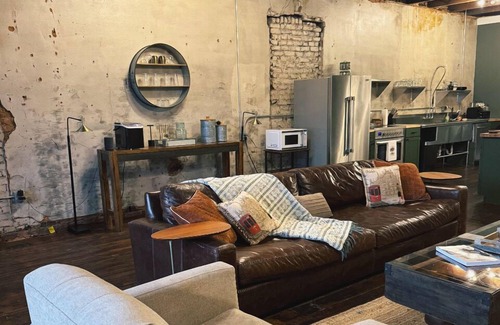 Statesville is waiting for you at this 2-bedroom apartment in the heart of our charming downtown retail district! Situated in the vibrant and sought-after historic downtown area. The kitchen is a chef's delight, boasting stainless steel appliances juxtaposed with reclaimed wood cabinetry and countertops. The space features a king bed and a queen bed, perfect for a terrific night's sleep. With amenities like a washing machine, heating, AC, and WiFi, guests will feel right at home. The bathroom offers a refreshing shower to start the day. Come experience a welcoming and pleasant stay in the heart of Statesville. We'll be available to answer any questions while you stay at our place.