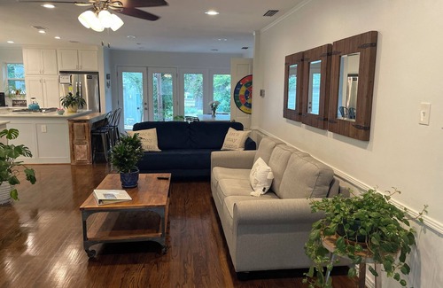 This brilliant house in Fort Worth offers 2 queen bedrooms, 2 bathrooms with a bidet, and a cozy living room with a sofa bed. Guests can enjoy amenities like a hairdryer, fitness room, AC, iron, and heating. Our place will help you feel at home while you're traveling in Fort Worth.
