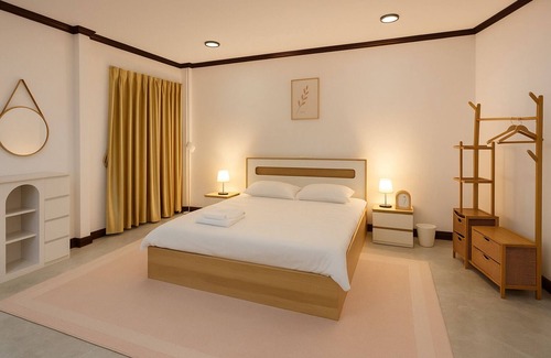 Nestled in Tambon Khlung, this brilliant house offers a perfect retreat for guests. With 2 cozy bedrooms featuring a king bed and a queen bed, a modern bathroom with a shower, and a lovely living room with an extra crib, this property is ideal for a serene getaway. Enjoy the convenience of amenities like a washing machine, AC, WiFi, and more during your stay. We'll be available to answer any questions while you stay at our place.
