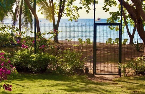This traditional 5-bedroom Costa Rican family home located steps from the water's edge on the beach in Playas del Coco is the perfect place to relax! The beach is calm and great for kids as the waves are more gentle than at many other beaches on the Pacific side. Much of the property is open air which means you can hear the waves from any room. El Pescadito is located on the northern end of the beach, which is the best part! All of the bedrooms have air-conditioning. One of the bedrooms has its own bathroom, and the others have a shared bathroom with the adjoining bedroom. The yard and patio area have a few hammocks to choose from, and there are also lounge chairs provided. The beach is directly in front of the property and is the perfect place to sit with a cocktail and watch the colorful Costa Rican sunsets.