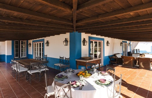This spacious 600m² house with five suites, located in the heart of a 350-hectare private property near Ermidas do Sado, is the ideal retreat for families and friends looking for a spacious and comfortable getaway. Set in the heart of nature, it offers an authentic farm experience, with a garden, fruit trees, and a variety of animals such as sheep, pigs, and chickens. Our certified integrated production guarantees fresh and organic products, including homemade eggs, vegetables, and fruits directly from the garden!