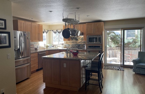 Enjoy all that Longmont and the Front Range have to offer while staying at our cozy 2 bed, 3 bath home in old town Longmont. Conveniently located close to Main Street where you will find locally owned restaurants and shopping. Longmont also offers a wide variety of local breweries. A short walk will get you to one of our beautiful parks so you can enjoy a picnic and playgrounds. If you find yourself hiking or biking in Boulder or Lyons, or a day trip exploring Denver or Estes Park, you will come home to a spacious kitchen where you can create lovely meals. If you need to just relax after your day of exploring, you can sit in the large steam shower in the spacious master bedroom. Soak in the beautiful sunny days or cool nights in a private fenced back yard with plenty of seating options and a gas fire pit. If you find yourself driving an electric vehicle, there is a 32 amp car charger located in the garage. Whatever you do while in Longmont, this vacation rental has everything you need to feel at home.