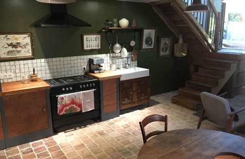 An old farmhouse, and former workshop to a carpenter/sculptor, artists Cécile and Natalie have lovingly restored this home to create a wonderful abode full of charm in the heart of a picturesque Burgundian village. The house has kept its traditional spirit (wooden beams, stone floors, an authentic staircase) while offering all the modern comforts you need to enjoy your stay: central heating, two wood burning stoves, modern bathrooms, a cosy living room, a large dining room flooded with natural light and a fully equipped bespoke kitchen with traditional, gas-fueled Lacanche stove. The house is full of games and books (English and French) for all ages, as well as original art works that give each room its own identity.