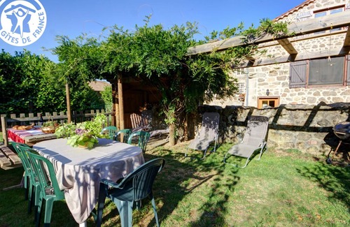 Groupable gîtes that can accommodate 12 people in two communicating spaces (you can move from one gîte to the other without going out). A 1st gîte "La Tour" of 130² on ground floor + first floor, large living room (allowing to accommodate 12 to 15 people for meals) and lounge area, wood stove, kitchen, 3 bedrooms including the spacious parents' bedroom, located in a rounded part of the house which gives it a lot of character. And a 2nd gîte "Le Camarin" of 120 m² on raised ground floor + first floor, kitchen area, large living room, lounge area, wood stove (wood provided), 3 attic bedrooms, mezzanine games area. Interior of the gîte particularly warm, beautiful beams, stone walls. South-east facing gîte, guaranteeing very good sunshine. For more comfort, charges are included in the price. In the heart of the Forez region, near Montbrison, discover these stone cottages full of character. Beautiful exteriors with enclosed courtyards and 500 m² of land, ideal for children. Peace and quiet guaranteed, with hiking trails starting from the cottages. Particularly warm interiors, beautiful beams, and stone walls. Central heating.