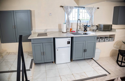 Get ready to relax in this pleasant studio in Montego Bay that is conveniently located near the Sangster International Airport (MBJ) and Hip Strip . This cozy space features 1 queen bed, WiFi, and AC to ensure a comfortable stay. The bathroom includes a refreshing shower for guests to unwind after a day of exploring. Comes with a free parking spot in a green and lush yard. and We hope you enjoy what our place and Montego Bay has to offer.