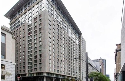 Stunning Executive Condo connected to the Hilton Embassy Suits Hotel.Ideally located in the heart of downtown & Old Montreal.Steps from the Conference Center,Notre Dame Basilica,Old Port,China Town & Place Des Spectacles.Offers a bright & Spacious 1 bedroom unit of 800sf with high end finishes,floor to ceiling windows,Cozy fireplace,Bathtub.Plus 1 FREE Garage space.Building offers restaurant,bar & extra pay parking. Minutes-highways,subway,nightlife, shopping & everything Montreal has to offer! CONDO OFFERS- Gorgeous sunny & clean open concept condo with high end finishings, Brazilian hardwood floors through out, large floor to ceiling windows. All the furniture is modern and the condo is nicely decorated as seen in the pictures. Living room comes equipped with a Lovely Electric Fireplace, 50‘ Flat screen Tv, Fibe Cable, Netflix access and unlimited high speed wireless internet. Kitchen has granite counters all stainless steel appliances and offers everything needed to cook as well as all kitchen essentials. There is 1 fully closed bedroom with a queen size bed and closets to arrange your personal items. The living room has a Leather L couch , a 2nd Leather futon couch that turns into a bed plus an electric inflatable air bed that can be set up if needed at your request.