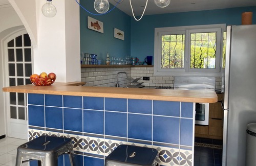 On the large sea view terrace, you have an electric plancha and a large table for your outdoor meals by the pool.