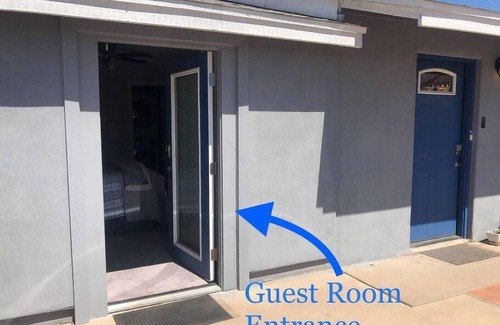 Nice room + full bathroom, with a private entrance (no kitchen). Your room is separated from my cute, 1950's desert home 1 mi. from ASU campus. Included: Microwave, fridge, coffee maker, top-quality gel memory foam mattress, soft bedding, desk, free wi-fi, smart TV, Netflix/PrimeVd, +more. Free parking. Smoke/pet-free. Short walks to light rail/buses. Short drives to desert hikes, stores, cultural venues, and pro sports events.