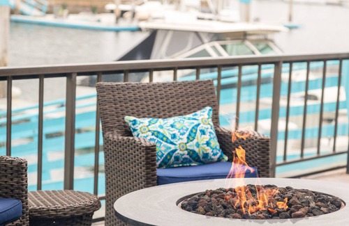 You can enjoy the boats entering and leaving the marina from the open California style kitchen. For eating in, the kitchen has everything you need. Von's grocery store is only a 5 minute drive away and offer a wide variety of ready-to-heat-and-eat meals, gourmet salads, and adult beverages. Or barbecue on the outdoor patio with a stainless steel propane grill. Relax on the rocking chairs or lounge chairs to enjoy the waterfront view, gorgeous sunsets or fish from the back porch.