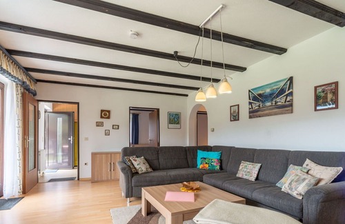 3-room apartment 75 m2, on the ground floor. Partly renovated in 2021, cosy furnishings: living room with satellite TV (flat screen), hi-fi system and DVD. Exit to the terrace. 1 room with 1 double bed (180 cm, length 200 cm). 1 room with 2 beds (90 cm, length 200 cm). Open kitchen (oven, dishwasher, 4 ceramic glass hob hotplates, toaster, kettle, microwave, electric coffee machine) with dining nook. Shower/WC. Gas heating. Large terrace 20 m2 partly roofed, garden 250 m2. Terrace furniture, barbecue (portable), sitting area. Beautiful view of the mountains. Facilities: washing machine, dryer, iron, children's high chair, baby cot, hair dryer. Internet (WiFi, free). Reserved parking at the house. Please note: non-smokers only. Maximum 2 pets/ dogs allowed. Private entrance, smoke alarm. If the extra beds are reserved, a double divan bed (160 cm, length 200 cm) is available in the living room.