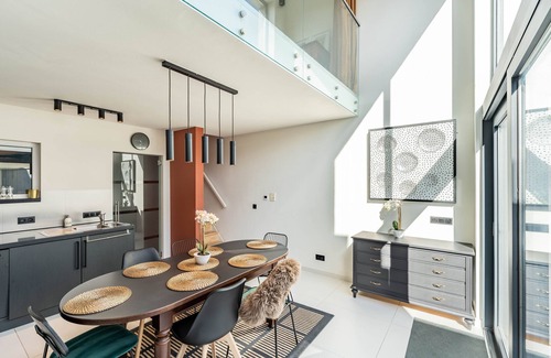 In addition to the bedrooms and stand-alone living area, the house boasts a small city courtyard as well as a unique rooftop terrace, perfect for relaxing and enjoying the fresh air. The laundry and storage room allows guests to keep it clean and organised during their stay. The fully equipped kitchen features modern appliances and all the necessary utensils to cook and dine in. The house also includes two and a half bathrooms, giving guests the necessary sanitary facilities and privacy they need.