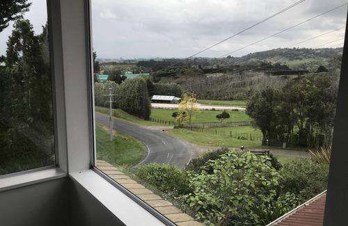 Lovely unit with country view in Te Puna central, attached to main dwelling, with own entrance via private courtyard. The bedroom has a comfy queen bed, a balcony & ensuite. There is also a lounge, air con/heat pump, kitchen (fridge/microwave, toaster, tea/coffee). We provide unlimited fast internet. There is off street parking. We are 5 mins to cafes, restaurants, medical centre & cycle trail. Close to cidery, walks, beaches & Rotorua is an hour away. Clean, private, spacious & elevated views.