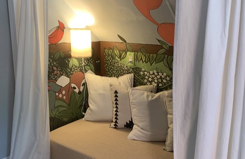 Waking up is easy with help from a Nespresso coffee maker or French press. The Cottage includes a full sized kitchen with lots of counter space for a complete cooking experience or bags and bags of takeout. We stock the coffee bar with assorted teas, Nespresso pods and sweetener options. Please bring your own milk or ground coffee for the French press. The kitchen also has basics such as extra virgin olive oil, salt and pepper.