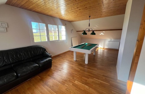 Nestled in Plateau d'Hauteville, this 7-bedroom, 2-bathroom vacation home brings it all within your reach. Fans of nature and the outdoors will love being 3 minutes by car from Cascade de la Charabotte and 6 minutes from Chapelle de Mazieres. You'll easily make the 22-minute drive to Plateau de Retord or the 20-minute drive to Caves of Cerdon.