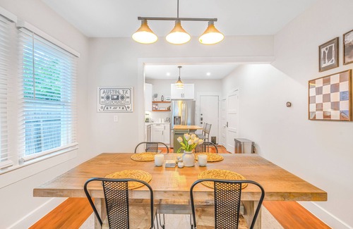 Hyde Park Heritage Haven: a cozy 1920s bungalow in the heart of Austin's Hyde Park. This 2-bed, 2-bath spot is perfect for a laid-back stay, surrounded by great restaurants, cool cafes and top shops—all walkable. It's got a fully equipped kitchen, comfy living space with all the modern perks. Perfect spot to explore Austin. Located in Hyde park, our neighborhood offers coffee shops, bars, restaurants, parks and shops. We are just over a mile from the University of Texas and just over two miles from downtown Austin.