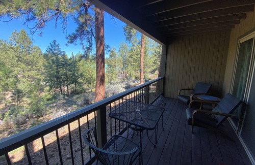 Air Conditioning, Bike, Hike, attend live music shows at the Amp, dine in downtown, then come home to a quiet, comfortable, and cozy space. Spend your days enjoying all that Bend and central Oregon has to offer then hit the pool and hot tubs while you wind down your day! Enjoy coffee/drinks/meals on the spacious secluded porch amongst the pine tree's. Ahhh, perfection!